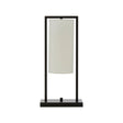From the lamp's rectangular frame drops a cylindrical shade made from crisp white linen. The contrast between light and dark creates a complete sense of balance and brings a stylish lighting effect in any home decor.
