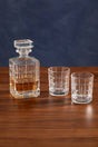 The Auclair 850ml check glass decanter comes with two matching tumblers. This decanter and tumbler set is a great way to add a touch of elegance to a bar cart.