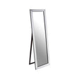 This rectangular mirror features bevelled corners which add a minimal style to its understated frame. Simple and sophisticated, it will bring a touch of elegance to the interior space. This contemporary mirror has an angled rest at the back that maintains its balance on the floor in portrait orientation.