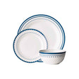Included in the set are 4 x dinner plates, 4 x side plates and 4 x bowls. Each piece is made from white porcelain ensuring durability, while the stylish blue line and dots detail, accentuate the contemporary style of the set. The smooth surface is easy to clean in warm soapy water making it ideal for everyday use. The set ensures you can enjoy starters, mains and desserts for four people.