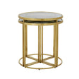 Finished in a rich gold metallic, the Axis nesting side tables' stainless steel frame in gold finish counterpoints the dark tinted glass top, creating a distinctive luxe accent piece.