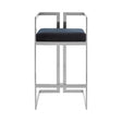 This stool brings a chic accent to the interior with its foam-padded seat upholstered in opulent black velvet. The stainless steel fixture features an angular framework that creates an art deco allure to a variety of home bars.