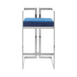 Azalea Blue Velvet Bar Stool with Silver Frame