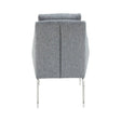 Perched on a sturdy metal base, this foam-padded chair boasts an angular profile that is upholstered skilfully in grey fabric. The gliding armrests offer a cosy seating experience, and the matching footstool will ensure a comfy retreat from a tiring day.