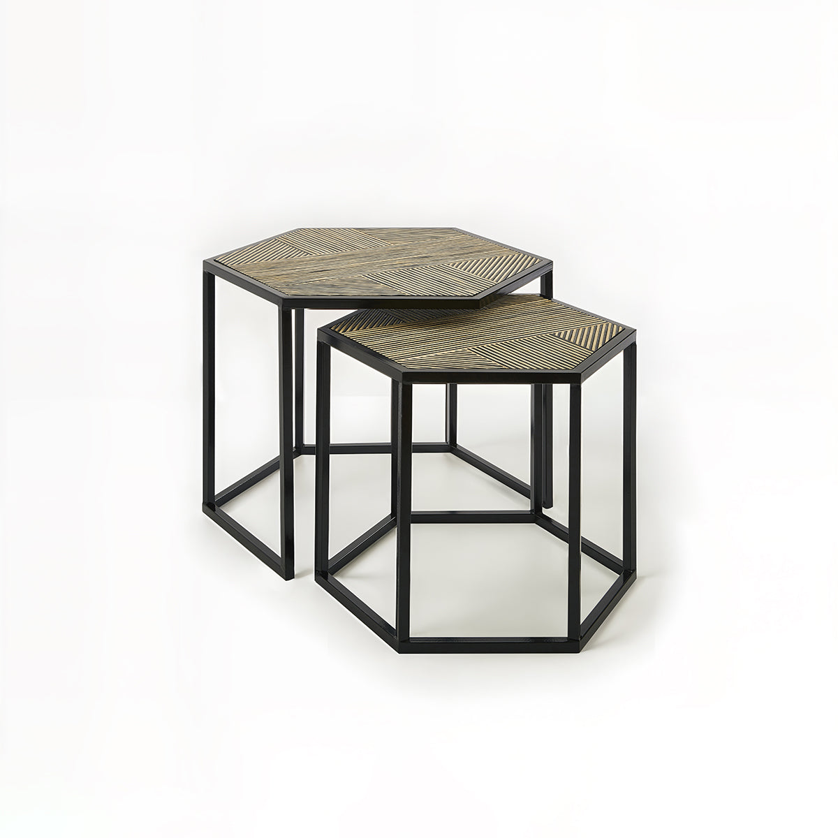 These smartly designed side tables are a chic fusion of durable metal frame and eco-friendly bamboo top. Offering a Bohemian vibe, the Babita black iron side tables feature clean lines and subtle graining in the tabletop. Their nesting deisgn makes them ideal if you have a compact space as they can be stacked easily after use.