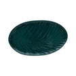 Made from porcelain, this serving plate in the dark green shade has a palm leaf design in its centre. The tropical leaf lends the design a textile texture enhanced with a glazed finish.