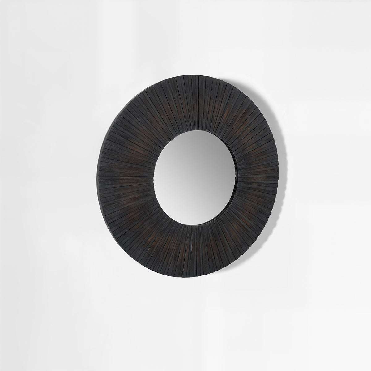 This mirror has an interesting texture thanks to the segments of wood that comprise its border alternating in size. It is light and dark colour, with the wooden splints having a roughly finished quality that partially shows their natural finish. This antique wood mirror will look ideal in any room with a coastal feel.