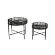 Embrace sustainable living with the Batu set of two side tables, handcrafted from eco-friendly black finish rattan. The top with raised edges prevents any spills and is supported by sleek yet sturdy black finished metal frame. The cross base of these rattan side tables offer stability and accentuates the skilfull weaving, adding a Bohemian touch to your contemporary or traditional living room.