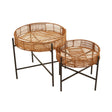 Embrace sustainable living with the Batu set of two side tables, handcrafted from eco-friendly natural rattan. The top with raised edges prevents any spills and is supported by sleek yet sturdy black finished metal frame. The cross base of these rattan side tables offer stability and accentuates the skillful weaving, adding a Bohemian touch to your contemporary or traditional living room.