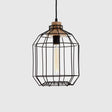 The shade features a black finish frame that makes it easy to counterpoint with silver metallic accessories. It's made from iron wire, and is formed into a cage structure that gives it geometric appeal. The bulb holder at the top of the shade is made from natural wood and complements the sleek black, with an elongated black bulb fitting attached.