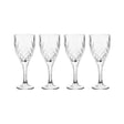 This set of four 290ml wine glasses adds a geometric accent to the bartop with its embossed detail and symmetrical patterns. Intricately crafted from a sturdy clear crystal, this glass set boasts a sleek stem supported by a round base.