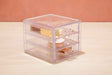 Organising makeup collection on the dressing table has become easier with this cosmetics organiser. This box-shaped transparent cosmetics organiser has stackable pull-out drawers, and it will keep all the go-to shades and makeup essentials close to hand.