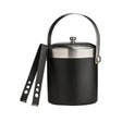 Keep the party going with this contemporary ice bucket and tong set. The stainless steel bucket features an enamel coating, scratch resistant to help it maintain its sleek black finish. Its silver rim and lid coordinate with the useful carry handle. Black enamel coated tongs boast gripped ends for easier ice distribution.