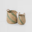 Made from sustainable seagrass with a natural finish, the Bora set of two storage baskets is an organic storage solution for your home. The two handles on both differently sized baskets makes it easy to carry around items. Each basket boasts light green lines that contrast the natural finish of these natural seagrass baskets and offer a bohemian touch to your interior.
