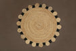 Boasting a mix of natural and black finish jute, this richly textured rug is intricately hand-woven and subtly refined to upscale the floor. The two-tonal concentric circle patterns create a geometric charm into modern and nature-inspired spaces.