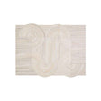 Crafted from hair on leather, this large rug features an abstract geometric design that consists of various shapes, including semi-circles, lines, and rectangular sections. The rug primarily utilises the natural palette of the hair on leather, ranging from creamy whites to light beiges and subtle greys. The natural colour variations create a soft, calming aesthetic, while the intricate pattern adds a touch of modern artistry.