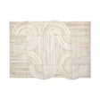 Crafted from hair on leather, this small rug features an abstract geometric design that consists of various shapes, including semi-circles, lines, and rectangular sections. The rug primarily utilises the natural palette of the hair on leather, ranging from creamy whites to light beiges and subtle greys. The natural colour variations create a soft, calming aesthetic, while the intricate pattern adds a touch of modern artistry.
