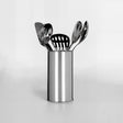 This five piece tool set is ideal for keeping your utensils close to hand and your kitchen tidy. Included in the set are a spoon, masher, ladle, slotted spoon and slotted turner, which all fit in the stainless steel canister. The tools made from stainless steel are durable for everyday use, and the mirror finish of the canister will bring a shine to your kitchen.