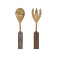 Made with durable iron, the classic styling of spoon and fork boasts a shimmering gold foil finish. The geode textured groove handles of agate stone give it a firm grip and organic accent.