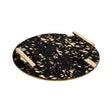 The frame of this luxe-inspired tray is crafted from tough, durable metal. Its surface is dressed in tactile cowhide, coloured black but featuring an array of golden flecks. Black stitching amplified its textured look.