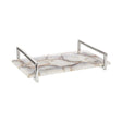 It has a polished finish that makes it smooth to the touch. A minimal band of steel forms a handle at each end, and is coloured silver for a sleek look. This chic and sophisticated accent piece is crafted by hand, meaning that each unit boasts its own unique variations.