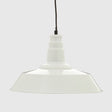 The Brant pendant light is held securely in place by a black canopy that fits snugly against the ceiling. A slender black cord descends to support the white shade. Made from strong metal, the bowl-shaped shade boasts a crisp white inner surface to match the exterior.