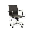 The black one-piece molded seat is the quintessential modern home office chair. It has a low back and arm rests for extra comfort. The solid chrome base with wheels is designed for easy movement and offers support to the chair.