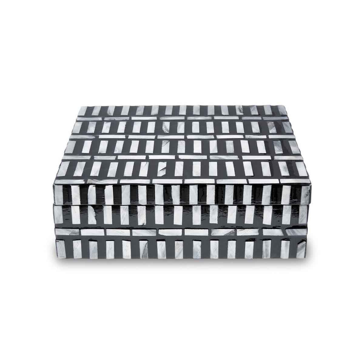 Each Bria trinket box is crafted by hand, the seashell tiles carefully set into its surface. The white shell contrasts with the black to monochromatic effect. Display it to create an eclectic accent in the living room or bedroom. *This item is handcrafted so please expect slight variations to the finish*