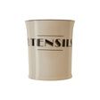 This dolomite utensils holder has a curved design and a smooth cream finish. The muted surface accentuates black art deco utensils worded detail, contrasted with the minimal trim around the upper edge. Ideal to organise kitchen utensils and keep them in place, this jar will help to declutter the countertop.