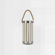 The Brooke table lamp uses a series of vertical wooden strips to create a cylindrical shaped accent piece. Held in place by metal clasps at the base and top, their crisp white finish creates a neutral counterpoint to the reflective chrome. A rope handle made from natural hemp enhances the harbour vibe.