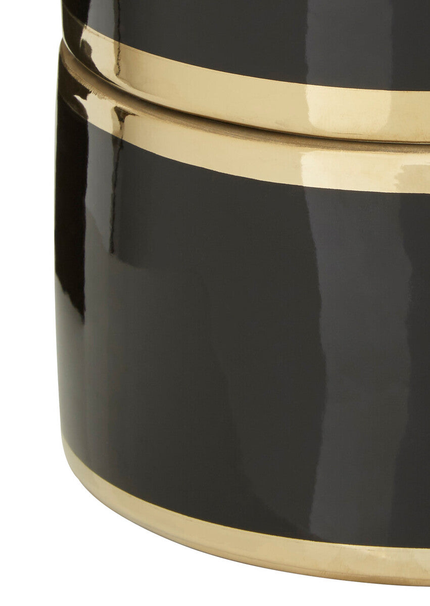Crafted from durable porcelain in round shape, this trinket box is reflective by its high gloss finish. The stylish zebra print in black and gold colours on the lid complements its decorative aesthetic.