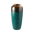 Made from ceramic and has a glazed finish that gives this modern style vase a slightly reflective look. Metallic gold blends into silver, before dissolving into aquatic blue towards the base.