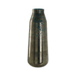 Created from thick glass, the large Caris vase adopts a traditional silhouette with a top that tapers inward. The glass, which is tinted a dark shade of turquoise, is partly concealed by a striking metallic finish. The textural finish combines dark gunmetal tones with warmer hues. The turquoise glass is revealed at the vase's top through a unique speckled design.