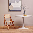 This chair is made from a sustainable beechwood frame that flat folds for compact storage. Woven from natural rattan, the backrest and seat stretch across the wooden frame and create a timeless design.