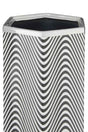 This freestanding umbrella holder is crafted for robust porcelain and adorned with a stylish wavy pattern. The reflective silver hexagonal rim adds to its finesse while coordinating to the black and white tones on outer.