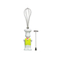 Serve up a cappuccino mocha or latte topped with a beautiful froth using the battery operated chef milk frother/whisk. The stylish chef design features two attachments one for whisking your eggs or mix and another to froth your favourite hot or cold drink. Made using durable plastic the handle has a comfortable grip giving you better control when using. The stainless steel attachments are durable for everyday use ensuring you get the desired results. Achieve a cafe quality drink without the steam or scramble up some eggs or cake mix with little effort using the lime green and white chef frother/whisk.