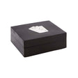 The box is made from eco-friendly mango wood and has a dark brown colour with a natural grain running through it. Smooth to the touch, the lid opens to reveal a deck of playing cards. A trio of ace cards are attached to the surface of the lid, each one made from polished aluminium for a reflective touch. *This item is handcrafted so please expect slight variations to the finish*