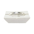 The contoured centre is supported by four rests which will neatly hold the cigarettes in place. The ashtray's symmetrical square design and tapered base are coloured in soft white to counterpoint the metallic accent.