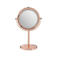 Made from durable iron, the Clara mirror features a role gold finish, creating a warm metallic look. The circular mirror is mounted on a sling style stand that allows its angle to be changed, with one of its sides providing 3x magnification.