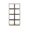 Its frame is made from tough iron with a silver finish that is distressed in places. Each storage compartment has a slim frame formed from concrete, the latter's dark grey colour counterpointing the crisp white finish inside.