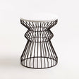 Shapely and abstract, the Corina side table's base is created from strong iron with a black finish. Smooth to the touch, the table's round white top creates a striking tonal contrast with the dark base.
