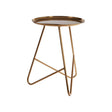 Created from smooth iron, the Corra side table radiates luxury thanks to its fashionable brass finish. Its contemporary hairpin legs intersect at an angle, creating a visually striking effect.