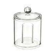 This clear cotton ball organiser has a round handle with a comfortable grip. Its cylindrical design is tall enough to allow upright stacking of buds. The polystyrene build makes it lightweight and resistant to bacterial growth.