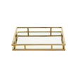This rectangular tray features clean and straight lines accented in the warm metallic finish with a mirrored bottom. Sleek and modern, use it to hold candles, flowers or on a bar counter to serve cocktail ingredients.