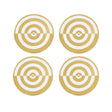 Brighten up any space with this set of four coasters featuring a deco fied bullseye pattern in white and gold accents. Made from ceramic, each rounded coaster is finished in a glazed effect that lends it a reflective accent and enhances longevity.