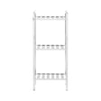 The open unit is made from strong metal and has a contemporary chrome coating for a reflective finish. Its three square shelves have a slatted design and can be used to store pots, utensils, and towels.