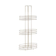 Crafted from chrome wireframe, this storage rack features three oval shelves for storing bathroom accessories. It is finished in gold plating that gives it a warm metallic appeal. Its open construction allows draining excess water while small, rounded feet keep it above the ground.