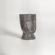 This Bohemian style large face planter is artistically crafted with magnesia fiberglass and given a distressed black finish, making it a suitable for modern interiors. The intriguing patterns on around the top and bottom exhibit a tribal vibe, offering a stylish way to add some lush green plants or floral display to your indoors and outdoors. A round base offers stability to this elegant black planter.