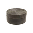 This small box is skilfully handcrafted from sturdy aluminium. The box in grey finish matches the removable lid that brings a touch of hypnotic detail at the top.