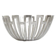 The Delphi bowl is skilfully handcrafted and boasts a sculptural statement that blends wonderfully into a variety of living areas. This bowl is made from robust aluminium and given a silver finish that exudes radiance, and the cut-out detail creates a geometric allure.